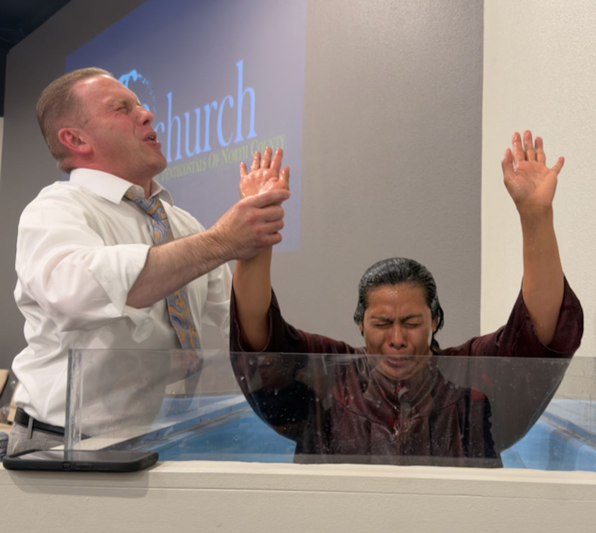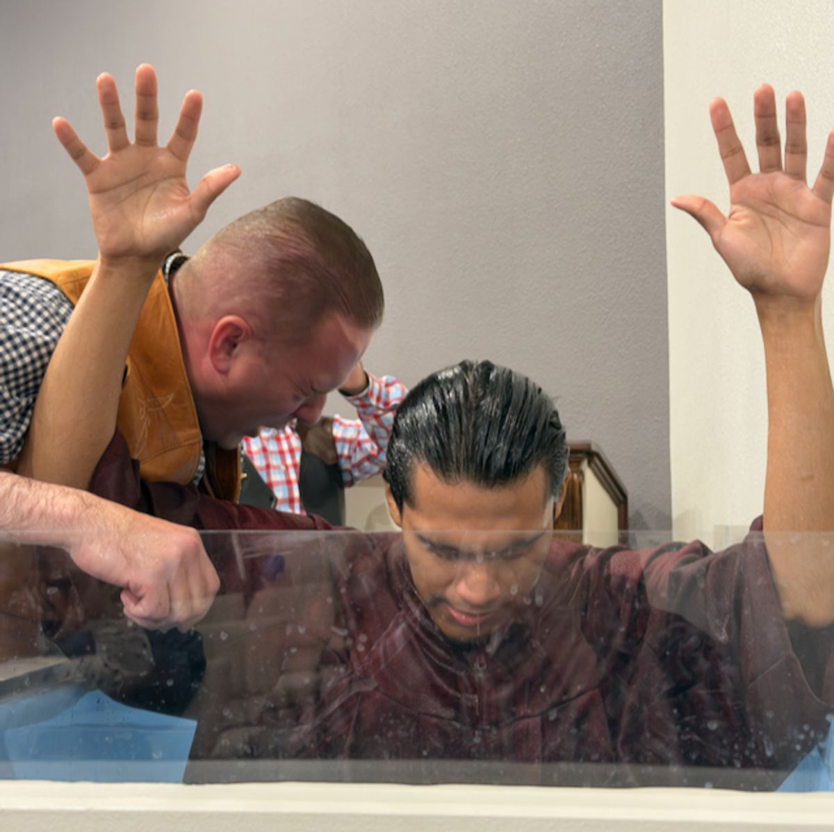 Pastor Bohannon Presents a Baptism Cert to Bro Jaret Bravo and Manny Bravo at TLC